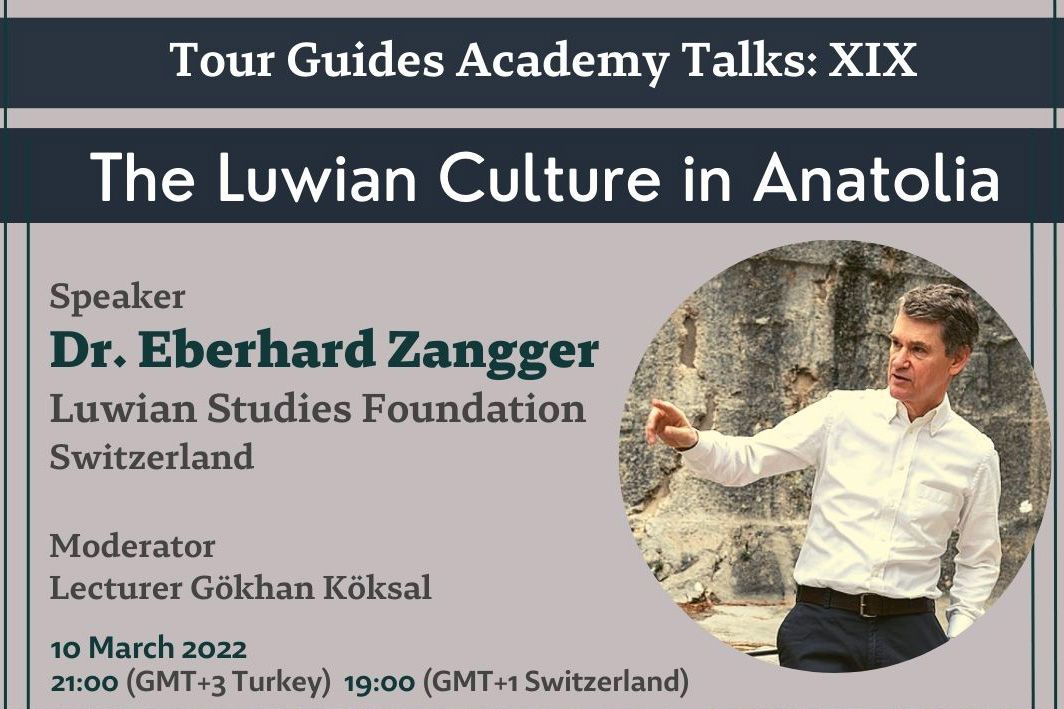 Die Luwier standen im Mittelpunkt eines 75-minütigen Online-Vortrags, den der Präsident von Luwian Studies, Dr. Eberhard Zangger, am 10. März 2022 im Rahmen des YouTube-Kanals für die Ausbildung von Reiseleitern hielt. Professor Uğur Akdu von der Tourismus-Fakultät der Universität Gumushane hatte Eberhard Zangger eingeladen, über den aktuellen Wissensstand der mittel- und spätbronzezeitlichen Kulturen in der Westtürkei zu sprechen. Die Vortragsreihe des Reiseleiter-Kanals besteht aus Live-Präsentationen mit anschließender Fragerunde, in deren Rahmen Spezialisten ausführlich über Archäologie, Kultur, Kunst und Geschichte referieren. Der Vortrag wurde von Gökhan Köksal von der Universität Sıtkı Koçman in Muğla moderiert. Durch die pandemiebedingten Einschränkungen im Lehrbetrieb der letzten zwei Jahren war es nicht mehr möglich gewesen, Vorträge an Universitäten in der Türkei zu halten. Die Online-Plattform der Tourismus-Akademie bietet daher eine hervorragende Gelegenheit, die so entstandene Lücke zu schließen und über die neuesten Erkenntnisse in der Forschung zu berichten. Die Tour Guides Academy hat Live-Übertragungen als Format gewählt, um eine dynamische Interaktion mit den Zuhörern zu ermöglichen. Die aufgezeichneten Vorträge einschließlich der Fragerunde stehen anschließend auf YouTube jederzeit zur Verfügung.