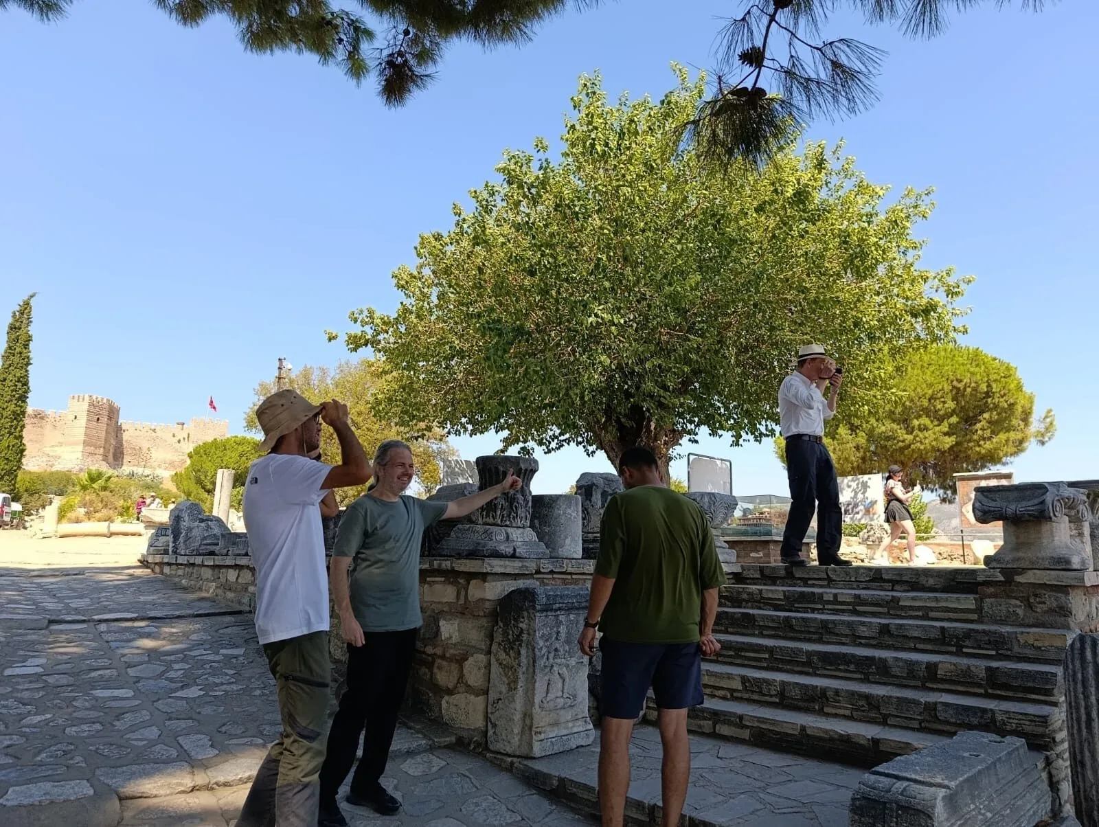 Vom 28. August bis 4. September 2025 unternahmen Eberhard Zangger und der Geodatenspezialist Alper Aşınmaz eine einwöchige Forschungsreise zu archäologischen Stätten im Westen der Türkei. Insgesamt legten sie dabei 2500 Kilometer zurück. Im Mittelpunkt stand das hethitische Quellheiligtum von Eflatunpınar östlich des Beyşehir-Sees, das naturwissenschaftlich-technisch untersucht wurde. Weitere Stationen führten zu bedeutenden Siedlungshügeln, Felsinschriften und Befestigungsanlagen, darunter die luwische Hieroglypheninschrift am Suratkaya, die bronzezeitlichen Gräber von Müsgebe und die zyklopische Mauer von Kuşadası. In Selçuk besuchten die Forscher den Ayasuluk-Hügel, wo sie von Prof. Barış Gür und seinem Team empfangen wurden (Foto mit freundlicher Genehmigung). Gür übergab zudem ein Exemplar seines neu erschienenen Buches „Thyateira II“. In Bergama trafen Zangger und Aşınmaz den ehemaligen Bürgermeister Sefa Taşkın, der bereits fünf Bücher über die luwische Kultur veröffentlicht hat. Die Exkursion endete mit Besuchen in Assos und Troja. Dort inspizierten die Wissenschaftler Museum, Ausgrabungen und jene Areale in der Ebene, in denen Zangger seit über 30 Jahren Außenbezirke der bronzezeitlichen Metropole vermutet.