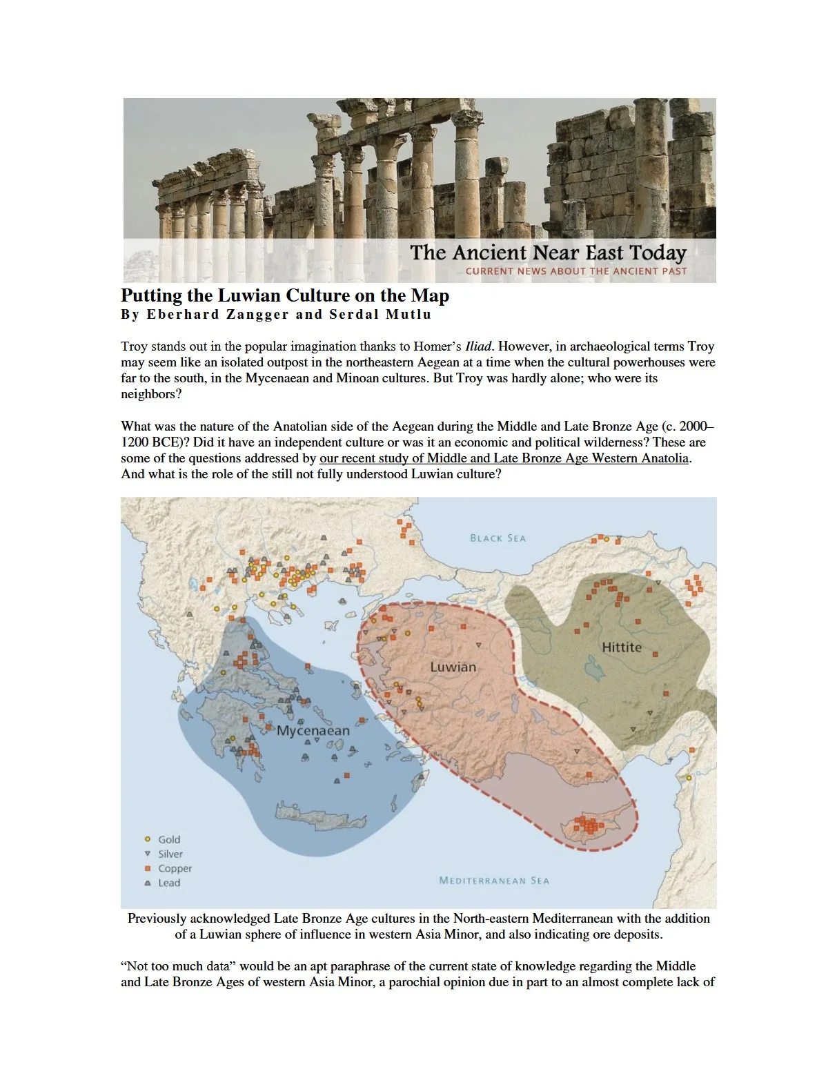 Ancient Troy and its Neighbors: Acknowledging the Luwian Culture at Last