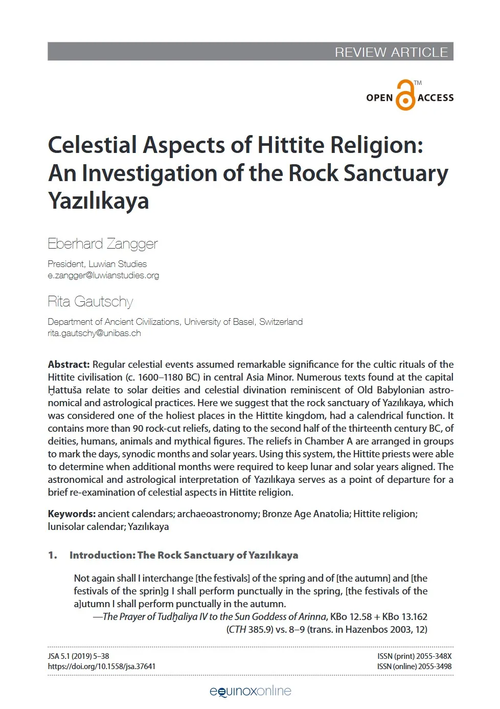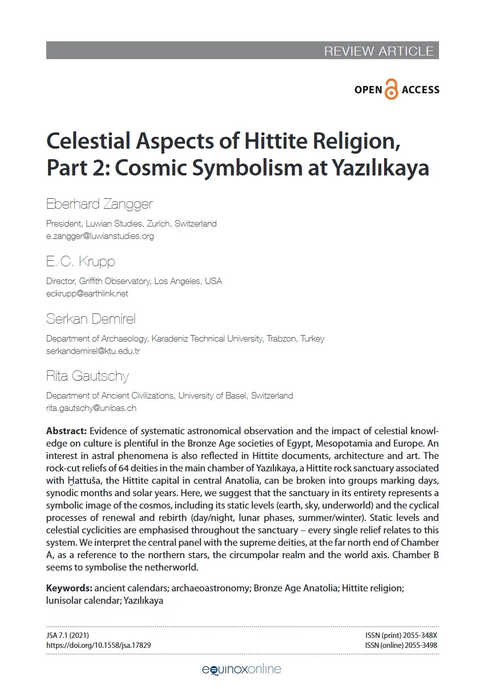 Celestial Aspects of Hittite Religion: An Investigation of the Rock Sanctuary Yazılıkaya