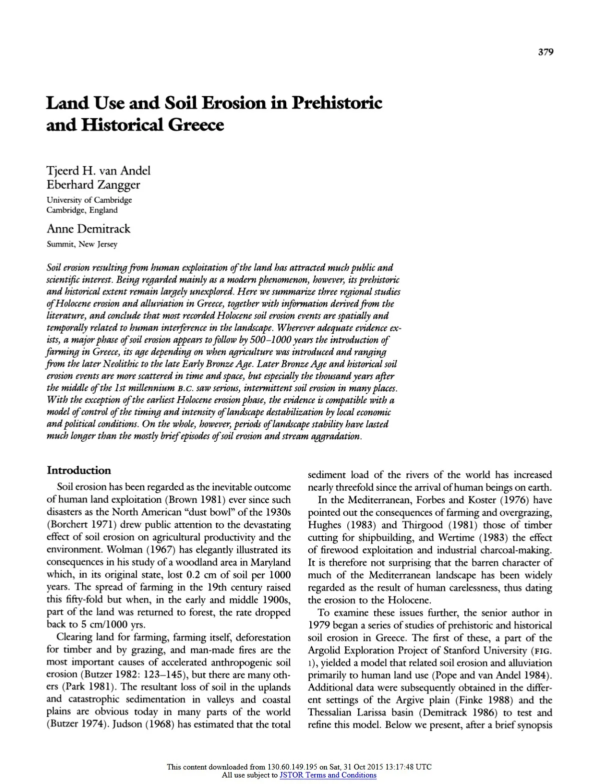 Land Use and Soil Erosion in Prehistoric and Historical Greece