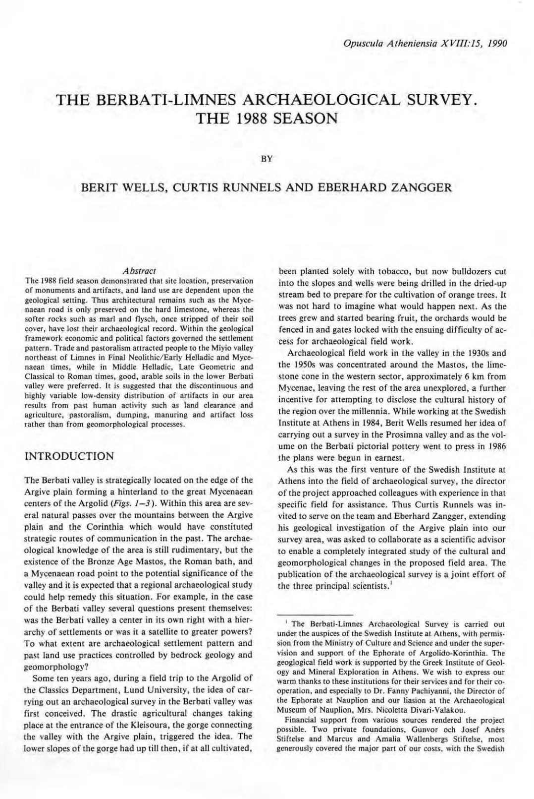The Berbati-Limnes Archaeological Survey: The 1988 Season