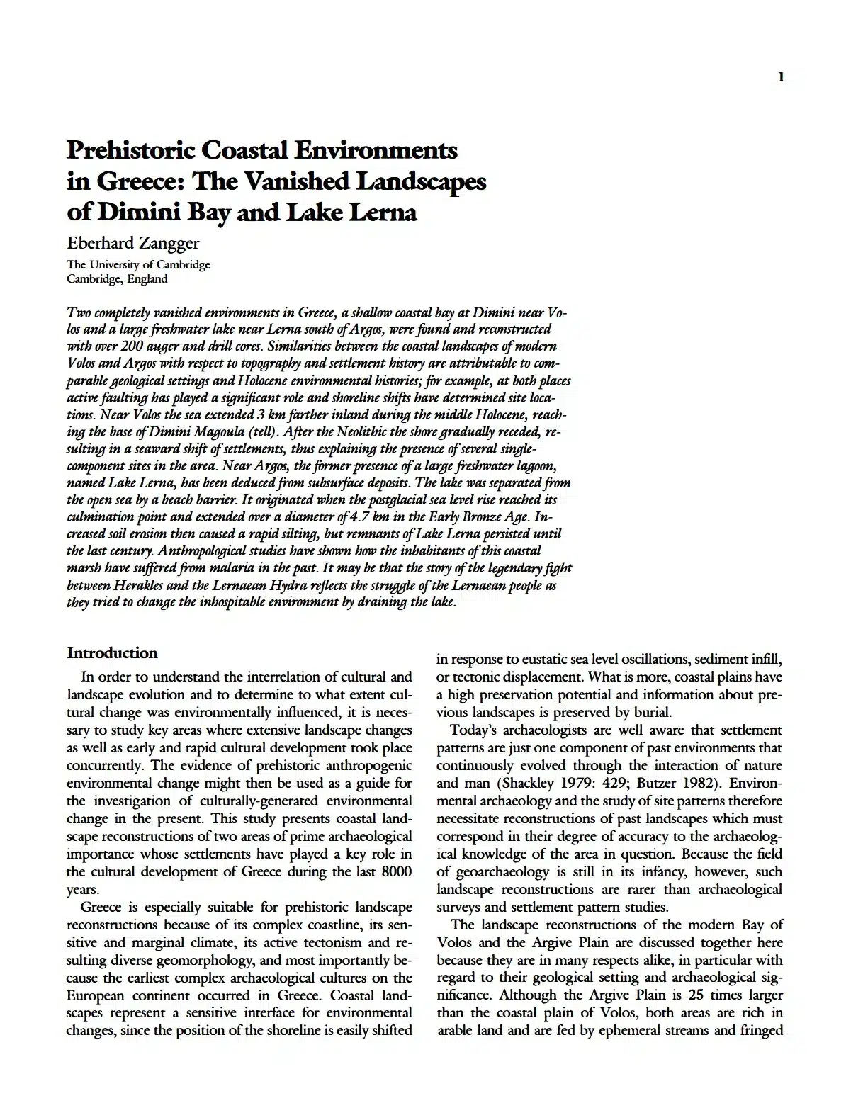 Prehistoric coastal environments in Greece: the vanished landscapes of Dimini Bay and Lake Lerna