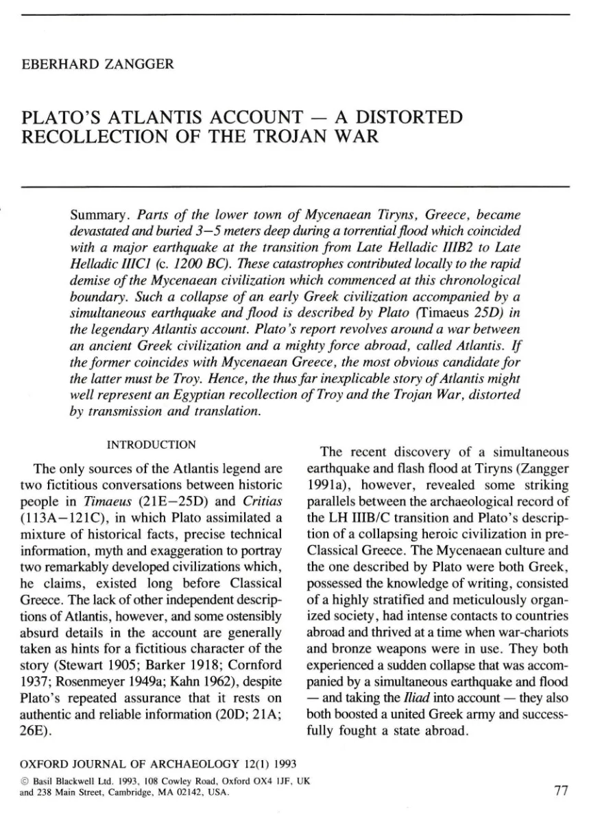 Plato’s Atlantis Account: A Distorted Recollection of the Trojan War